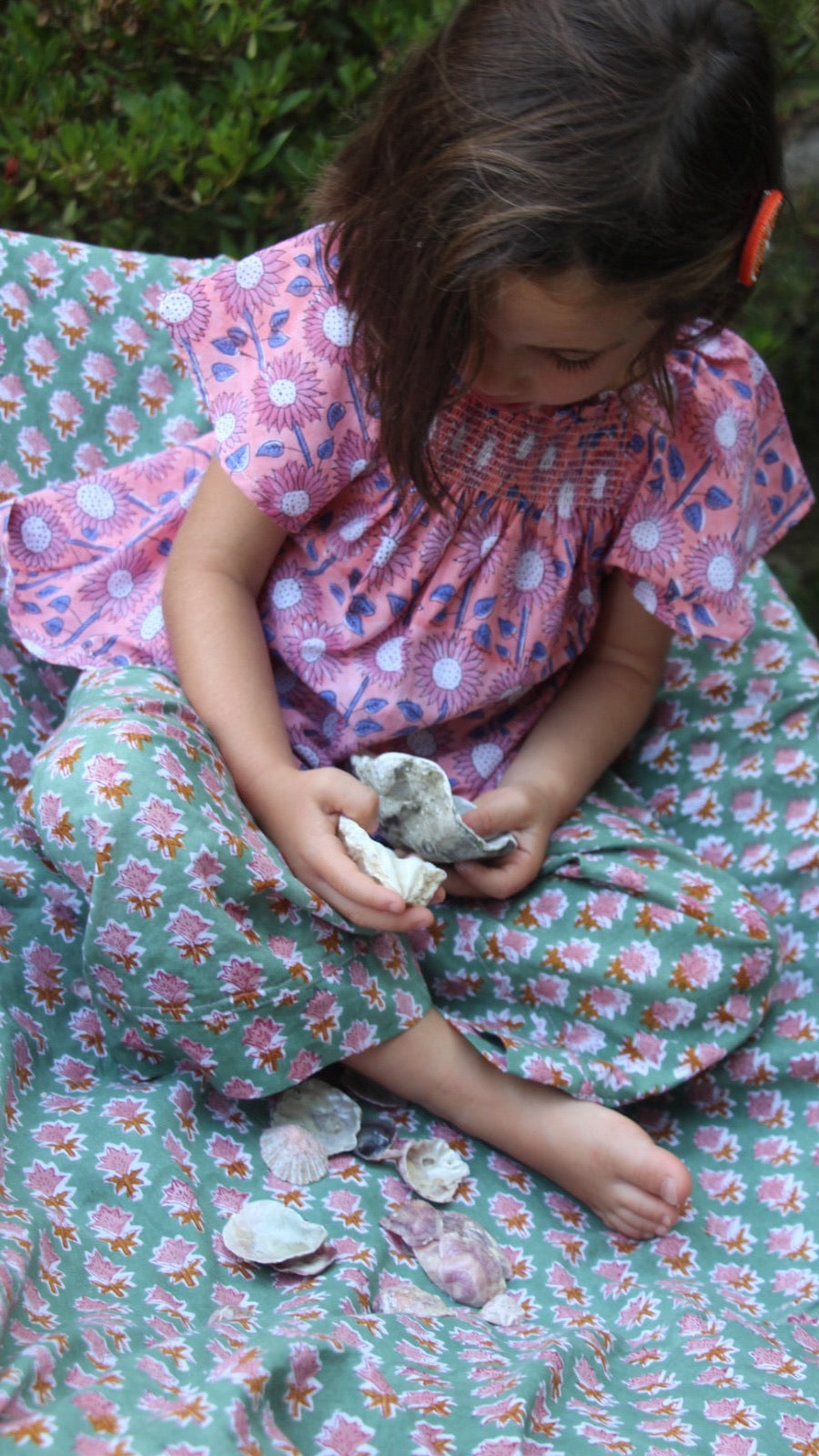 The Palermo Pants feature a wide, straight-leg silhouette designed for ultimate comfort and freedom of movement. Made from 100% soft, breathable cotton, they feel light and airy — ideal for warm-weather days or relaxed playtime. The elastic waistband ensures a flexible, comfortable fit that grows with your child. A perfect unisex essential with a touch of laid-back boho charm.